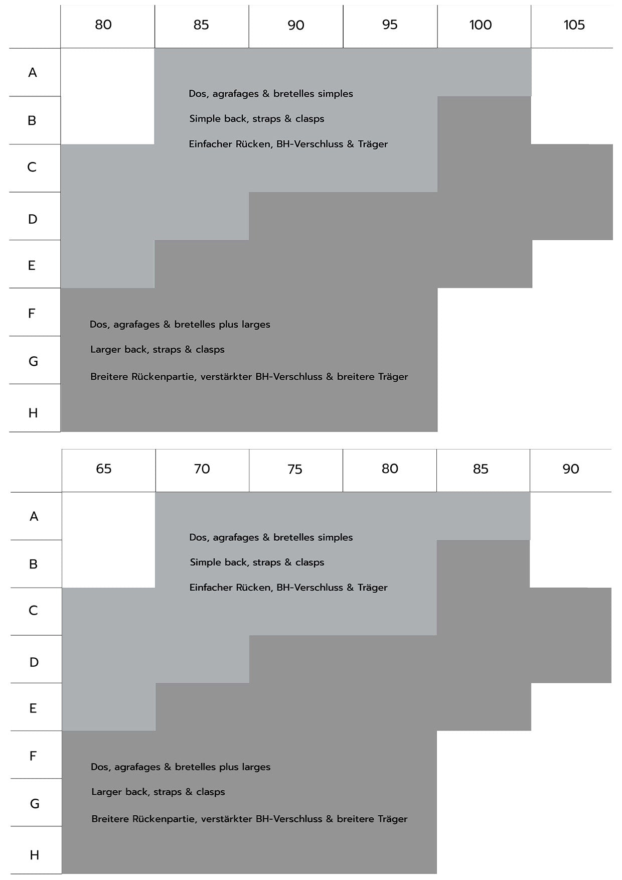 Conception de nos soutiens-gorge selon votre tour de dos et la taille du bonnet